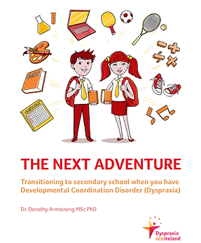 Dr Dorothy Armstrong has published a book, entitled The Next Adventure, published by Dyspraxia Ireland. The book acts as an extensive guide to students with DCD/Dyspraxia making the transition from primary to secondary school. It includes testimonies and lived experience from students who have made the transition themselves, as well as guides for the everyday challenges of secondary school life. The book is available to purchase from the Dyspraxia Ireland website, which can be accessed here. |